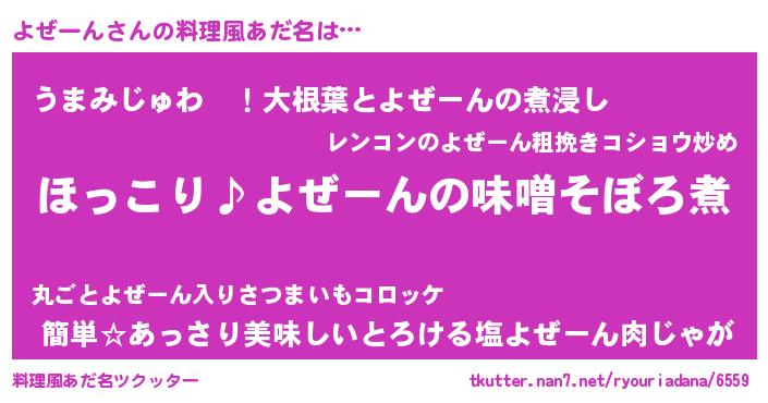 | ヘコむあだ名 | 『よぜふぇ~』『酢こんぶ』 |