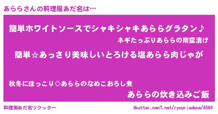 | 意味不明あだ名 | 『永久保存あらら』『ペロリンあらら』 |