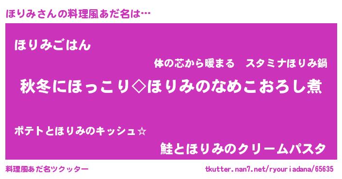 | 男性向けラノベタイトル風あだ名 | 『ほりみに滅ぼされるだけの簡単なお仕事です』 |