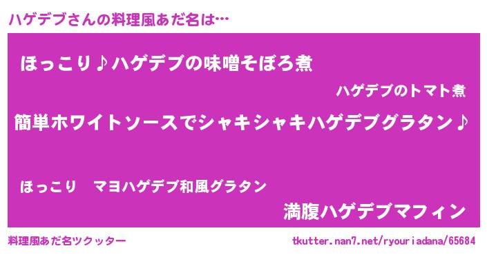 | 男性向けラノベタイトル風あだ名 | 『ハゲデブの嫁は女の子じゃないと思った?』 |