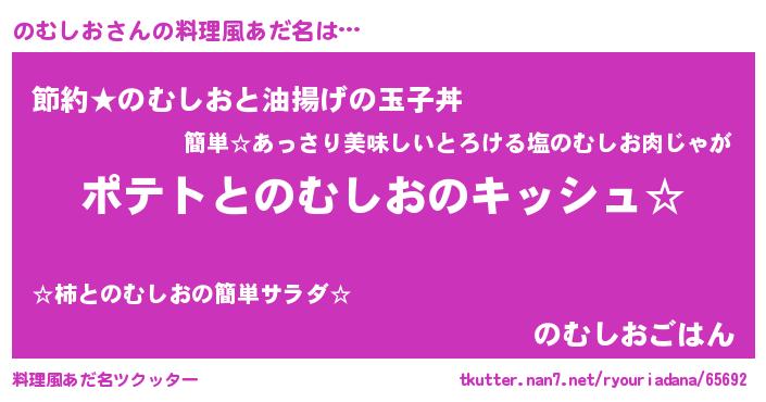 | 女子向けラノベタイトル風あだ名 | 『のむしおの卵を拾いまして』 |