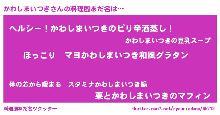 | 意味不明あだ名 | 『住所不定無職かわしまいつき(98歳)』 |