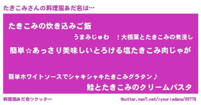 | 意味不明あだ名 | 『永久保存たきこみ』『ペロリンたきこみ』 |