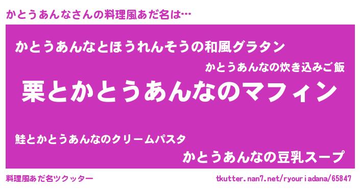 | 胡散臭い通販商品みたいなあだ名 | 『信頼と実績のサプリメント…その名も「かとうあんな」』 |