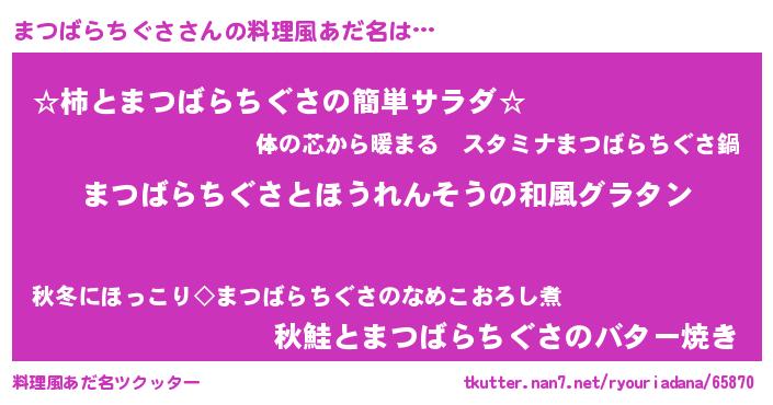 | 男性向けラノベタイトル風あだ名 | 『まつばらちぐさ~年齢イコール彼女いない歴の魔法使い~』 |