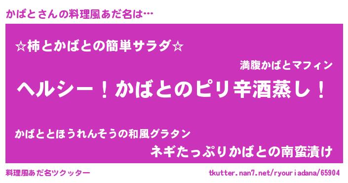 | 男性向けラノベタイトル風あだ名 | 『Re:かばとから始める異世界生活』 |