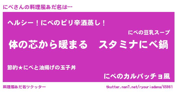 | ポケモン風あだ名 | 『ニベダネ』『ニベセウス』『ヒニベ』 |