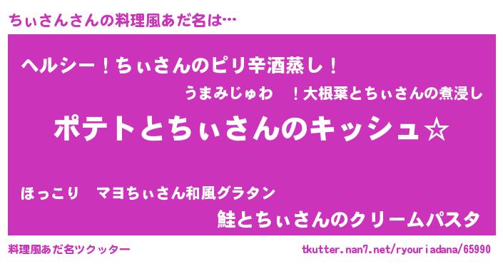 | 女子向けラノベタイトル風あだ名 | 『ちぃさんの卵を拾いまして』 |
