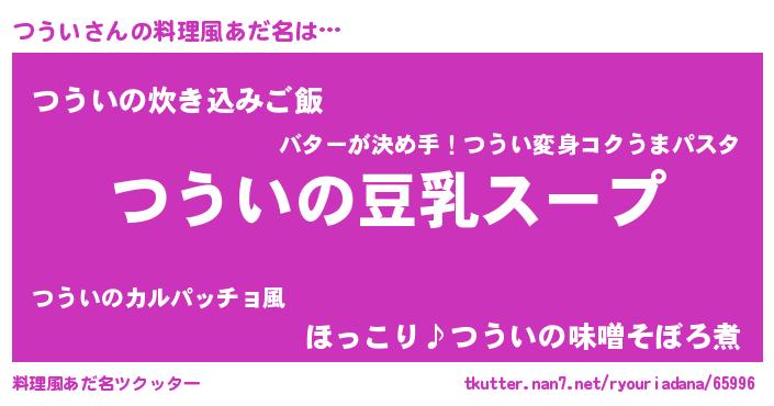 | 女子向けラノベタイトル風あだ名 | 『つういは平凡を望む』『つうい恋絵巻』 |