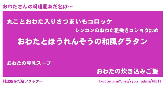 | ヘコむあだ名 | 『おわっ子』『なまこ酢』 |