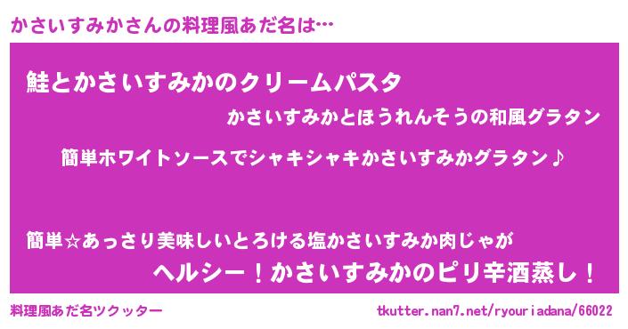 | 胡散臭い通販商品みたいなあだ名 | 『全米が絶賛したサプリメント…その名も「かさいすみか」』 |