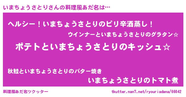 | 男性向けラノベタイトル風あだ名 | 『いまちょうさとりの嫁は女の子じゃないと思った?』 |