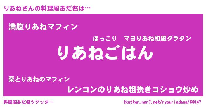| 可愛いあだ名 | 『りあぷりん』『りあねママ』 |