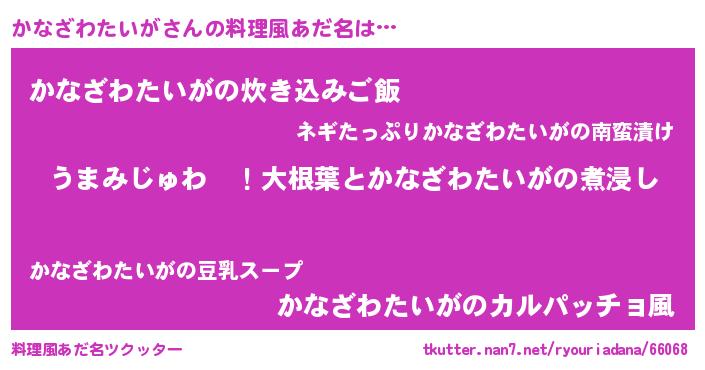 | 女子向けラノベタイトル風あだ名 | 『かなざわたいがの婚約者』 |