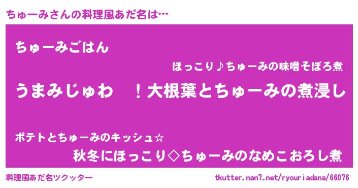| 意味不明あだ名 | 『ちゅーみフォーエバー』 |