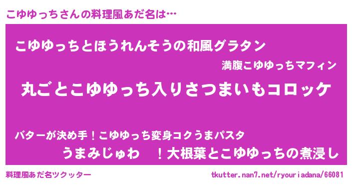 | ヘコむあだ名 | 『なまこ酢』『こゆゆっち(爆)』 |