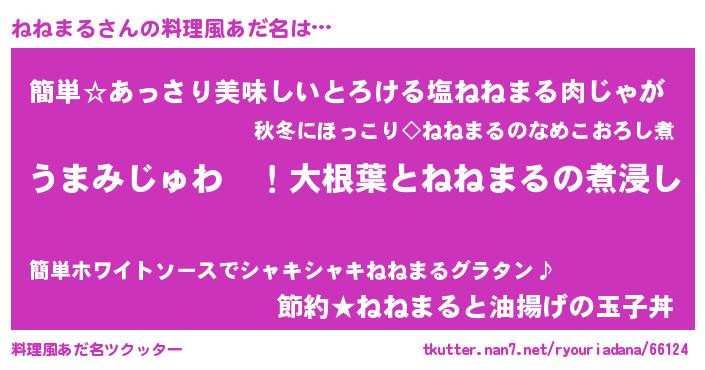 | ファンタジー風あだ名 | 『エターナルネネマルー』『ネネフェル』 |