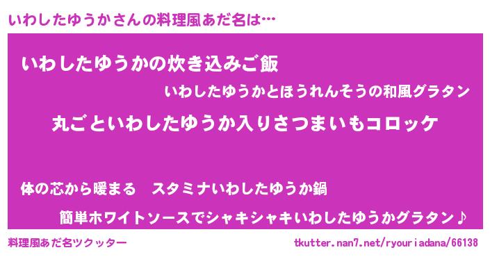 | 女子向けラノベタイトル風あだ名 | 『乙女ゲームの破滅フラグしかない悪役いわしたゆうかに転生してしまった…』 |