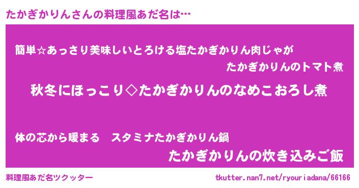ヘコむあだ名 | 『たかぎかりん(小並感)』『レバニラ』 |