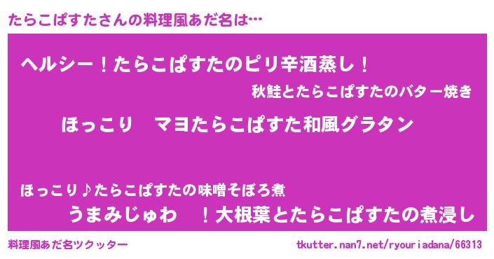 | ヒーロー風カッコイイあだ名 | 『仮面タラダー』『究極戦士タラコパスタ』 |