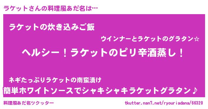| 女子向けラノベタイトル風あだ名 | 『闇のラケット』『ラケット様がみてる』 |