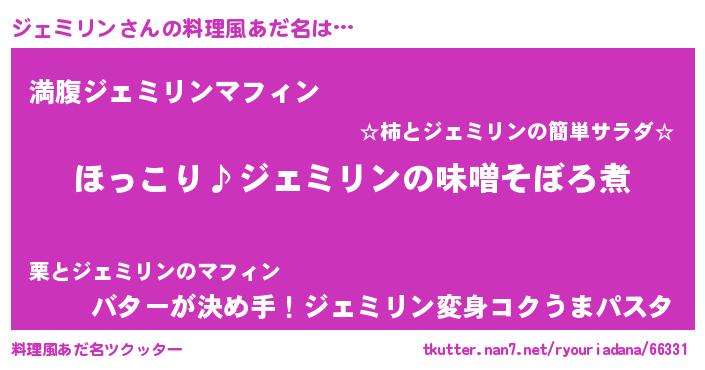 | 男性向けラノベタイトル風あだ名 | 『ジェミリンの憂鬱』『緋弾のジェミリン』 |