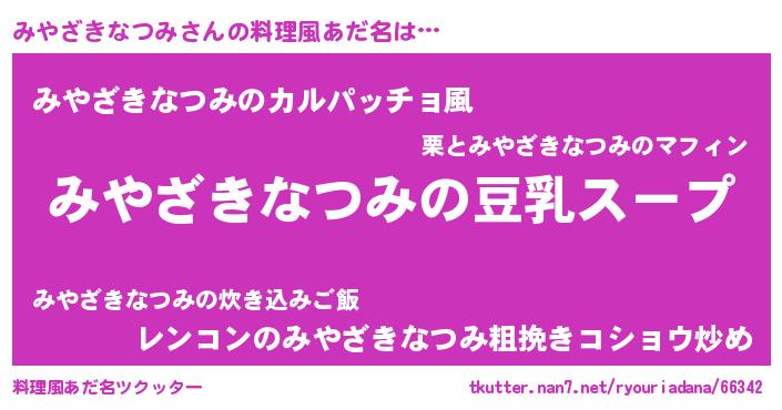 | 意味不明あだ名 | 『とにかく怪しいみやざきなつみ』 |
