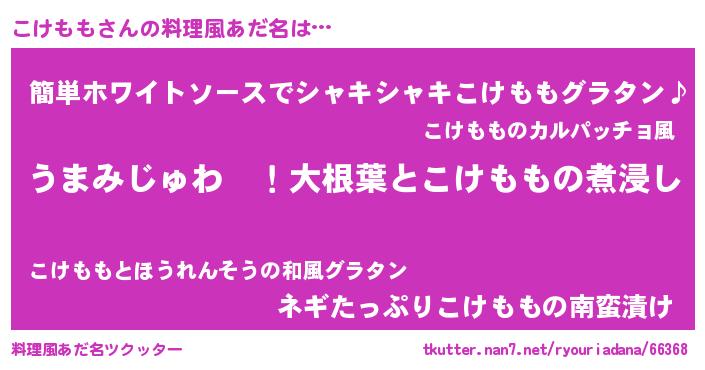 | ポケモン風あだ名 | 『コケモダネ』『ヒコケモモ』 |