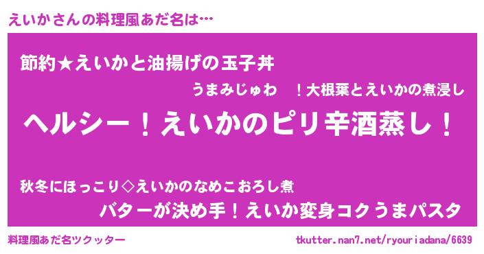 | 男性向けラノベタイトル風あだ名 | 『Re:えいかから始める異世界生活』 |