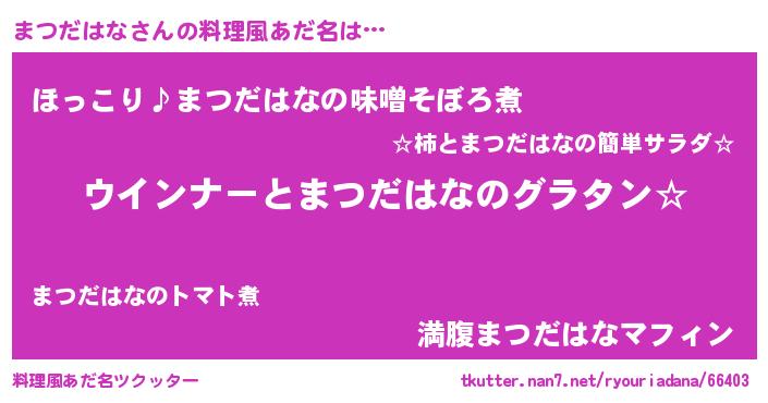 | 男性向けラノベタイトル風あだ名 | 『やはりまつだはなの青春ラブコメはまちがっている 』 |