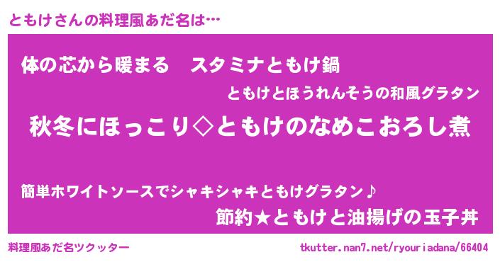 | 意味不明あだ名 | 『ともけフォーエバー』『ペロリンともけ』 |
