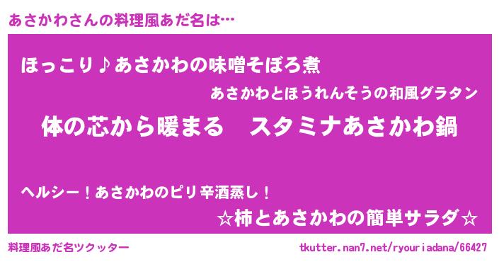 | 女子向けラノベタイトル風あだ名 | 『あさかわの雑貨屋さん』『闇のあさかわ』 |