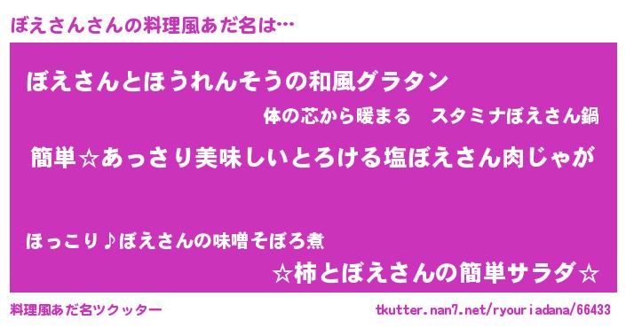 | ヘコむあだ名 | 『ぼえさん(震え声)』『なまこ酢』 |