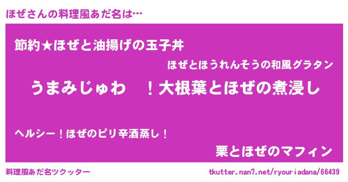 | ヘコむあだ名 | 『レバニラ』『ほぜもー』『ほぜ(爆)』 |