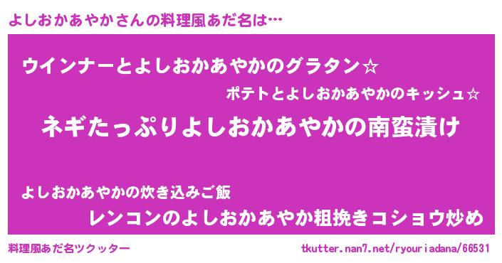 | 男性向けラノベタイトル風あだ名 | 『ヨシオカアヤカアートオンライン』 |