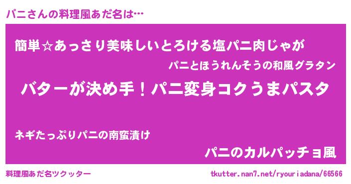 | 意味不明あだ名 | 『眠気覚ましガムパニ味』『永久保存パニ』 |