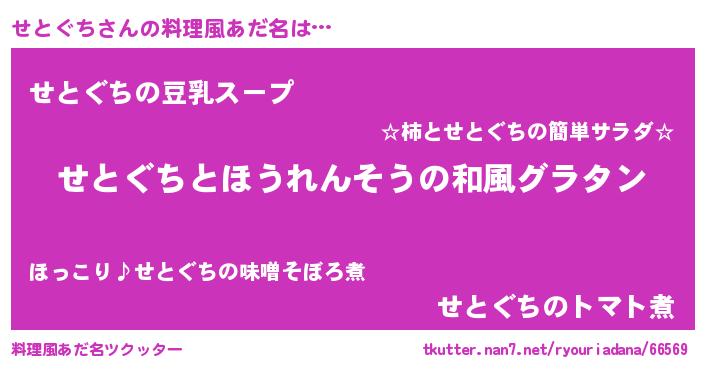 | 意味不明あだ名 | 『ヨモギ科せとぐち属』『自称せとぐち』 |