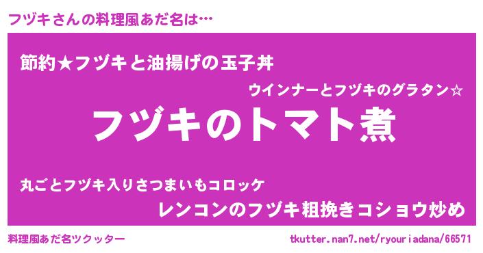| ポケモン風あだ名 | 『フックウザ』『フヅチュウ』 |