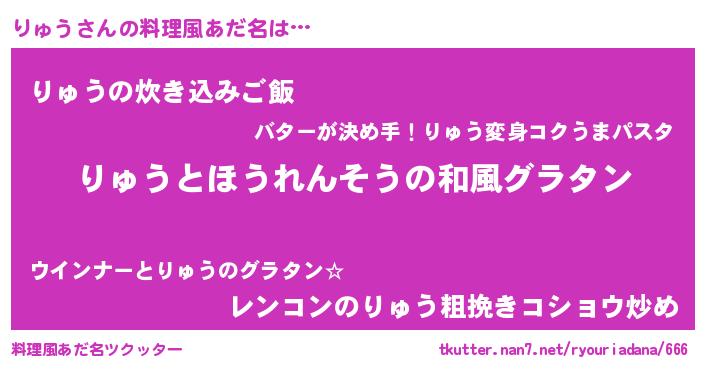 | ヒーロー風カッコイイあだ名 | 『最強戦士リュウ』『愛の使者りゅう』 |
