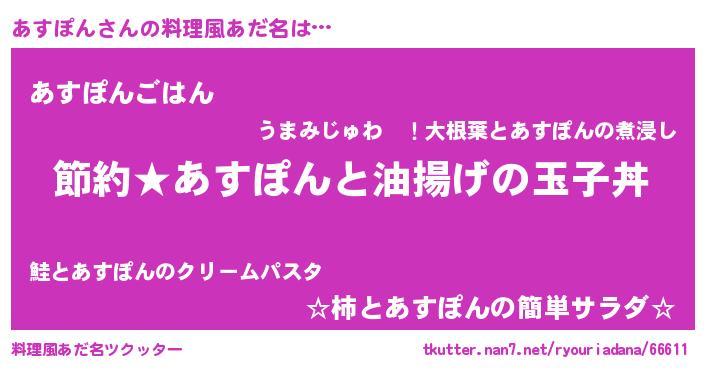 | ヒーロー風カッコイイあだ名 | 『スーパーアスポン』『愛の使者あすぽん』 |