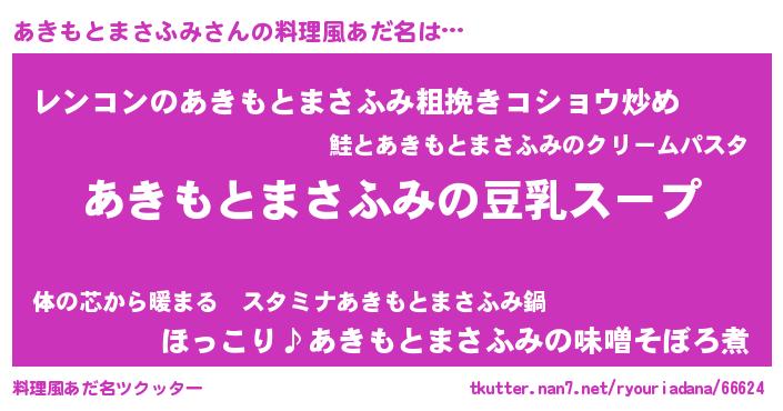 | 男性向けラノベタイトル風あだ名 | 『ダンジョンにあきもとまさふみを求めるのは間違っているだろうか』 |