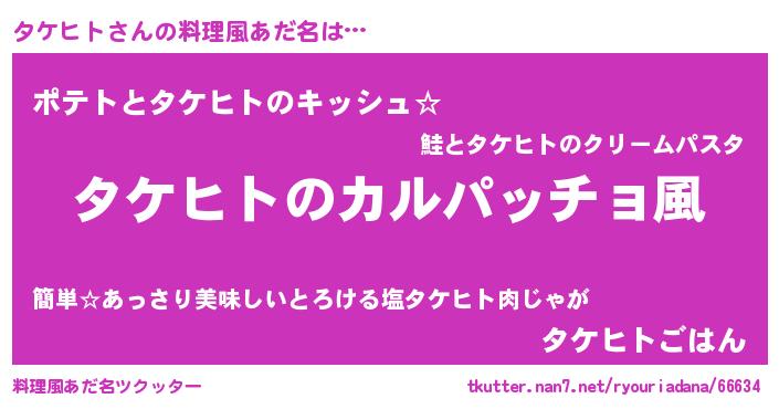 男性向けラノベタイトル風あだ名 | 『魔弾の王とタケヒト』 |