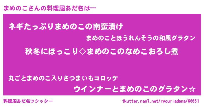 | ファンタジー風あだ名 | 『マメフェル』『エターナルマメノコー』 |