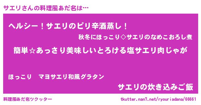 | 意味不明あだ名 | 『永久保存サエリ』『自称サエリ』 |