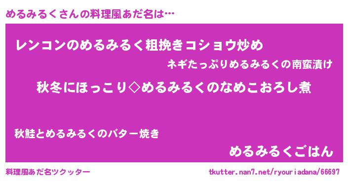 | ヘコむあだ名 | 『めるっふぃ~』『めるみるく(爆)』 |