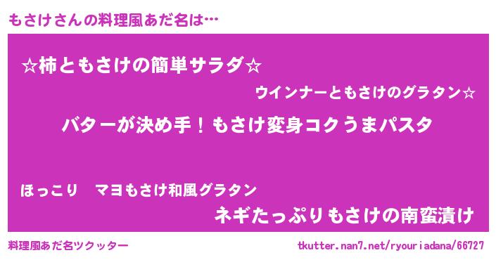 | 女子向けラノベタイトル風あだ名 | 『もさけ恋絵巻』『もさけ伯爵の花嫁』 |