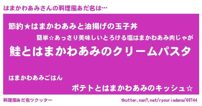 | 男性向けラノベタイトル風あだ名 | 『ノーゲーム・ノーハマカワアミ』 |