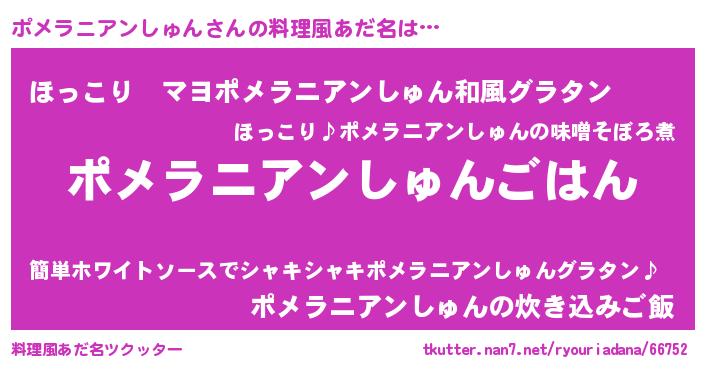 | 男性向けラノベタイトル風あだ名 | 『ポメラニアンシュンスレイヤー』 |
