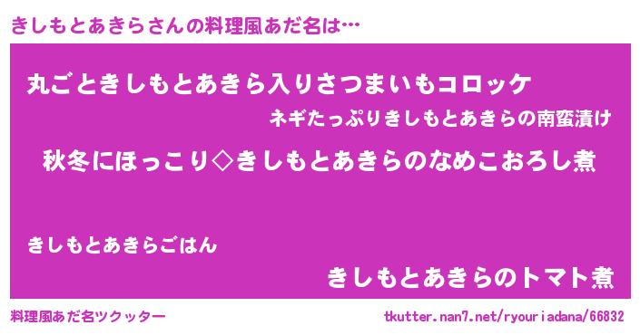 | 意味不明あだ名 | 『住所不定無職きしもとあきら(6歳)』 |
