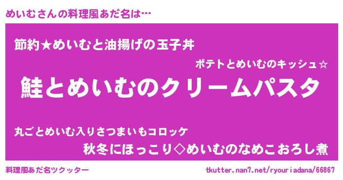 | 女子向けラノベタイトル風あだ名 | 『死神めいむの再婚』 |
